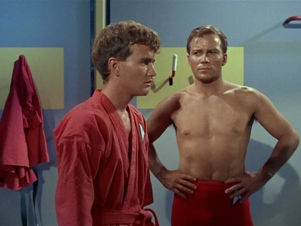 Kirk’s gi top and black belt seen hanging on the wall in the Enterprise dojo.